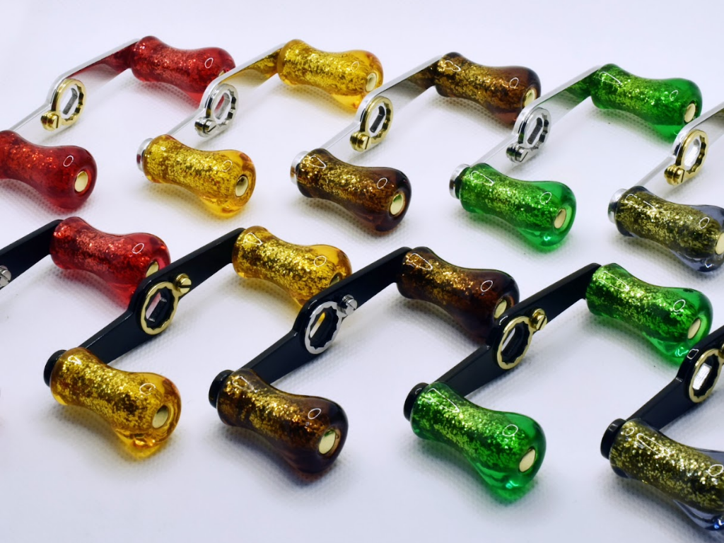 ・どちらのカラーも昔からカスタムハンドルの定番色として存在し、レッドはもちろんシルバーやブラック等リールを問わず似合います