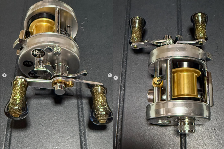 81年エビス期の1500Cとラージクレストの2500Cをカッコよくカスタムされています!シルバーのリールにゴールドのパーツが入るとCDLのような高級感がありながらも、どこか無骨な雰囲気になりますね。タックルの統一感がめちゃくちゃ渋いです。